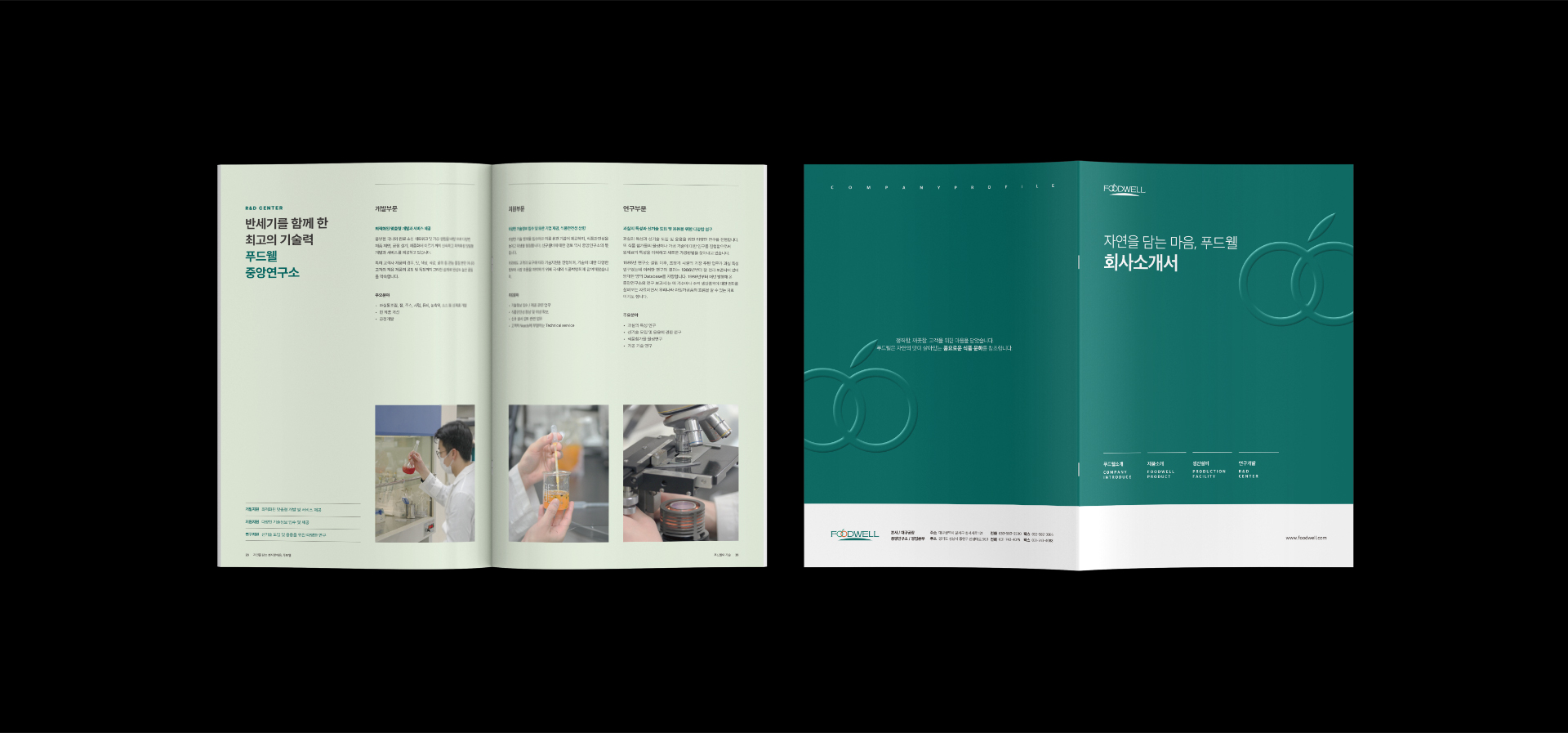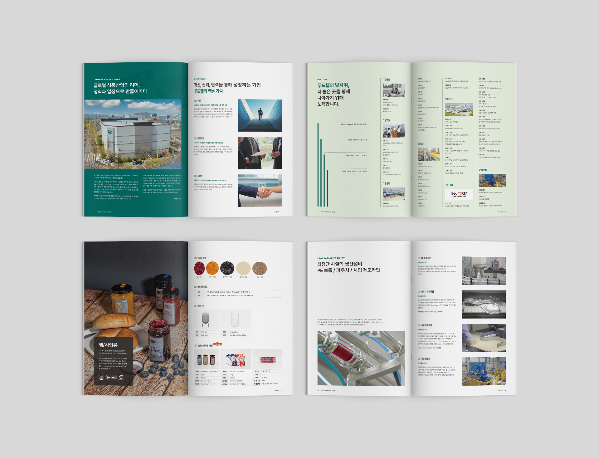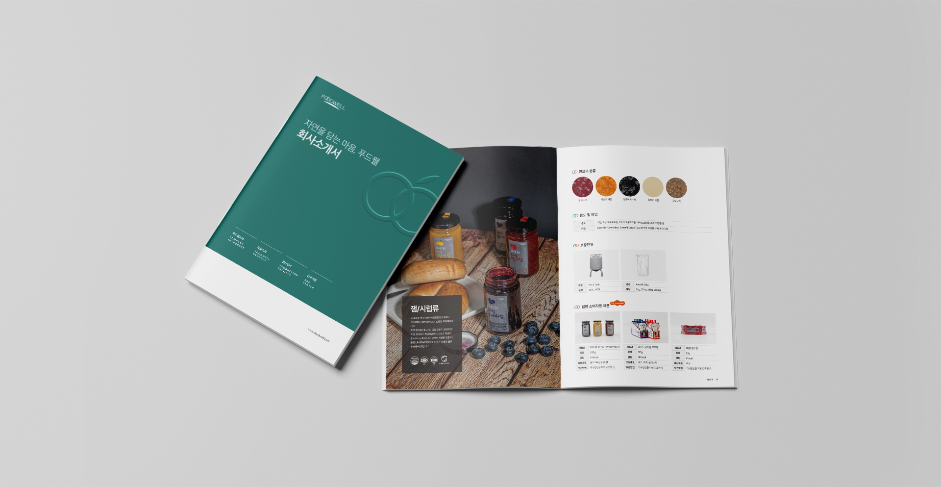 오랜기간 함께 해온 (주)푸드웰의 회사소개서 카탈로그를 제작하였습니다. 푸드웰 브랜드의 컬러를 활용한 커버 디자인 시안은 로고의 엠보싱 후가공을 통해 입체감을 표현하였으며, 각 파트별로 간지 페이지를 구성해 카테고리별로 명확이 구분될 수 있게 하였으며, 단조로울 수 있는 박스그리드를 여러형태로 변형하여 지루함을 덜었습니다.